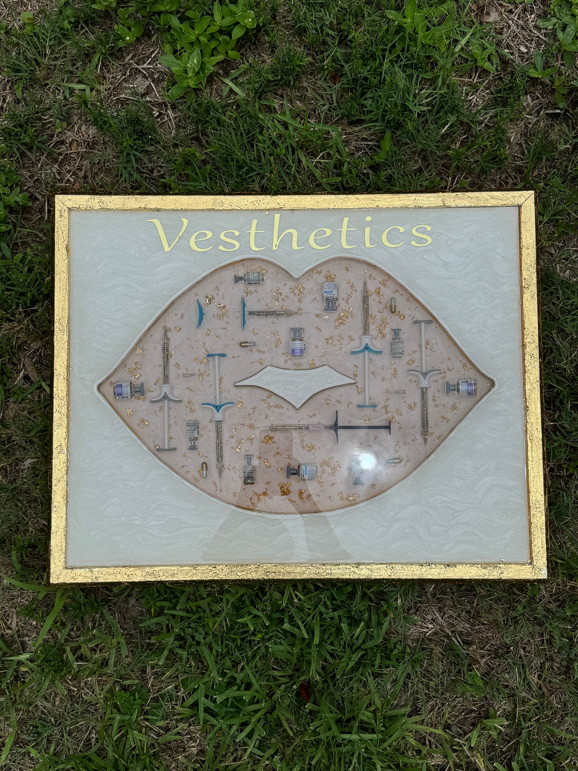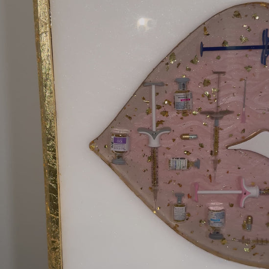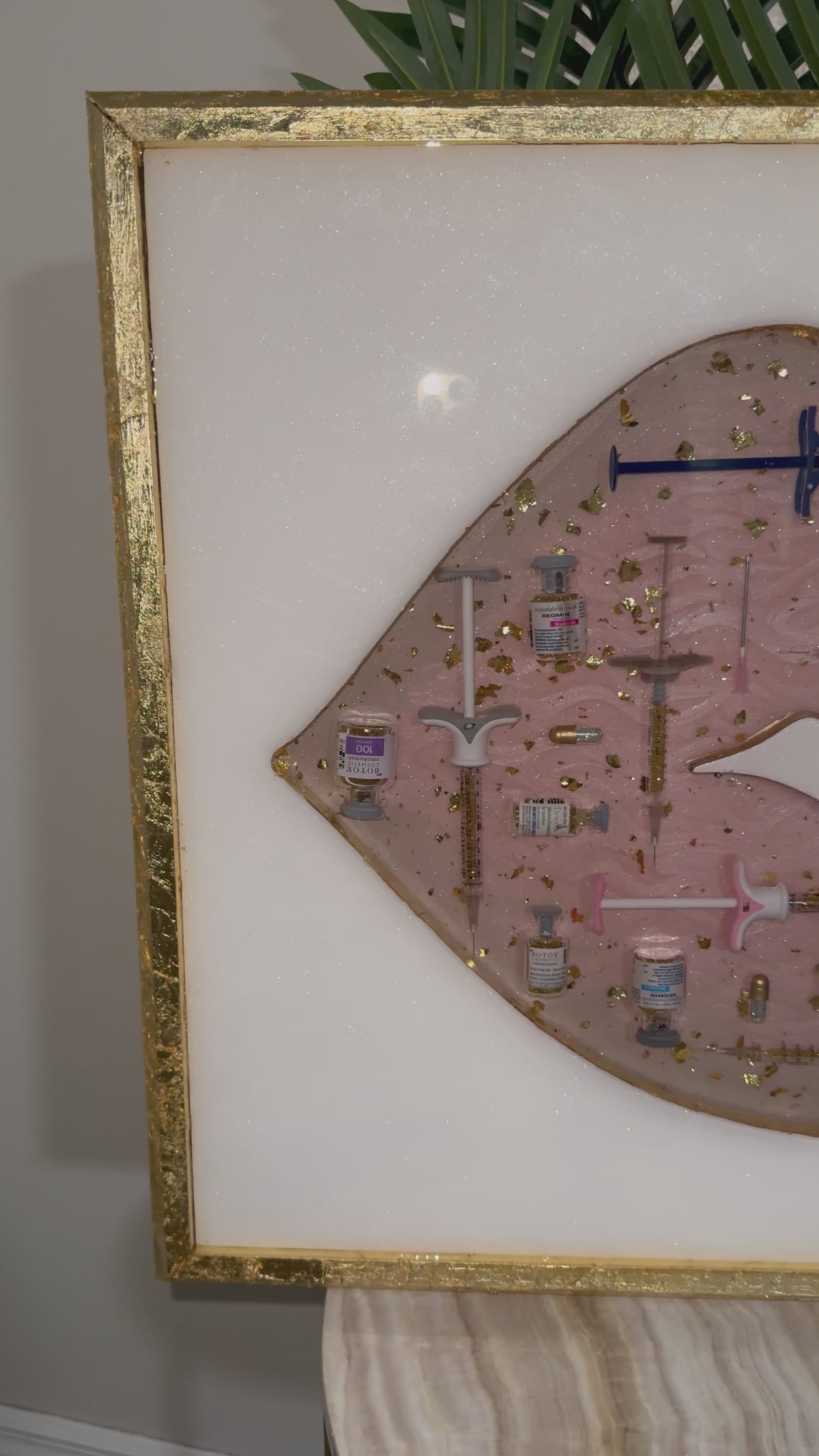 This 20 inch x 24 inch wall piece is the perfect addition to a med spa, dermatology office, or plastic surgery office. It displays lips with your favorite products embedded within them; typically Botox, Dysport, Juvederm, Versa, and Restylane, although products may vary depending on availability. Please message me if you request specific products. Otherwise it’ll be an assortment.