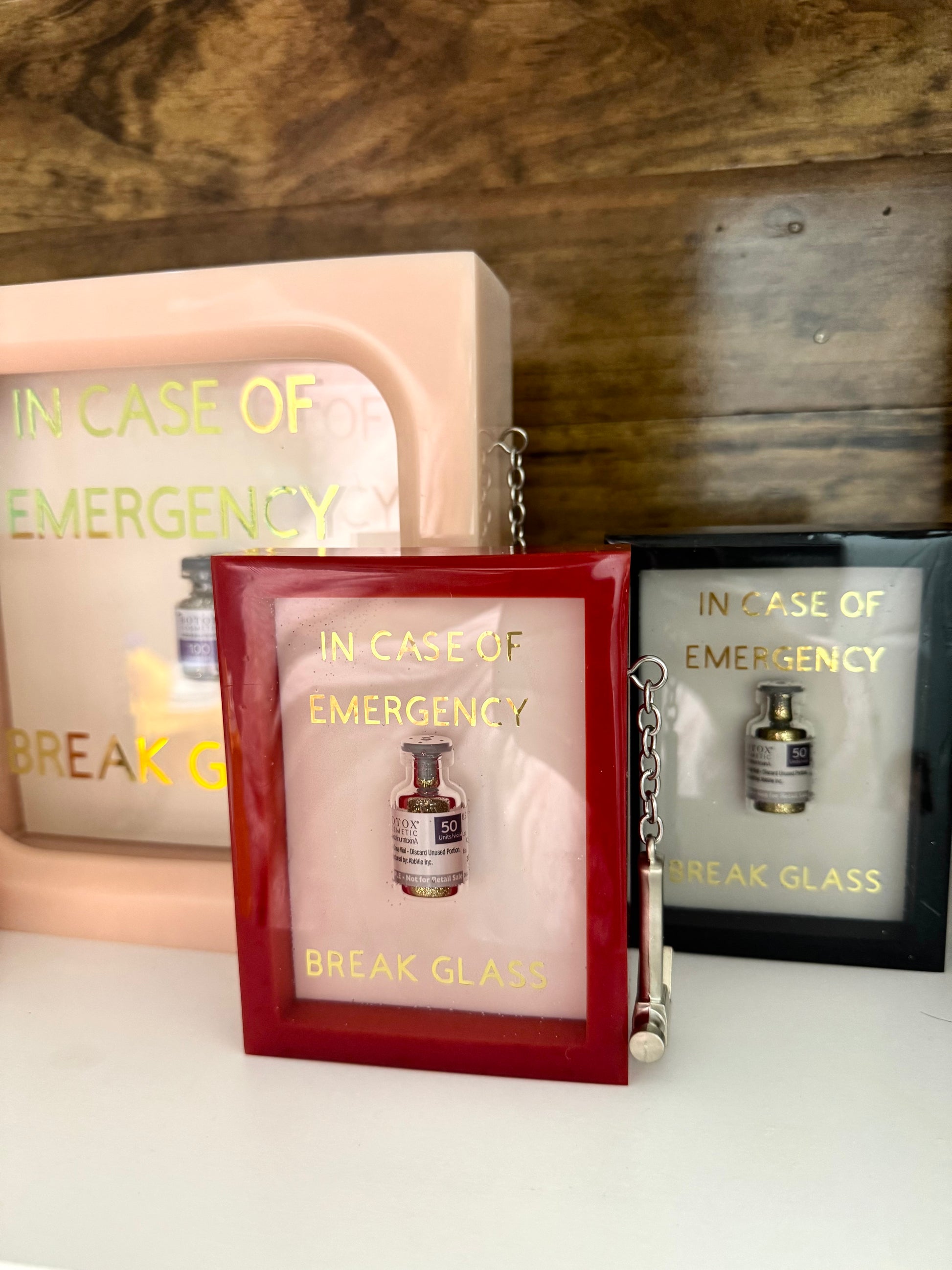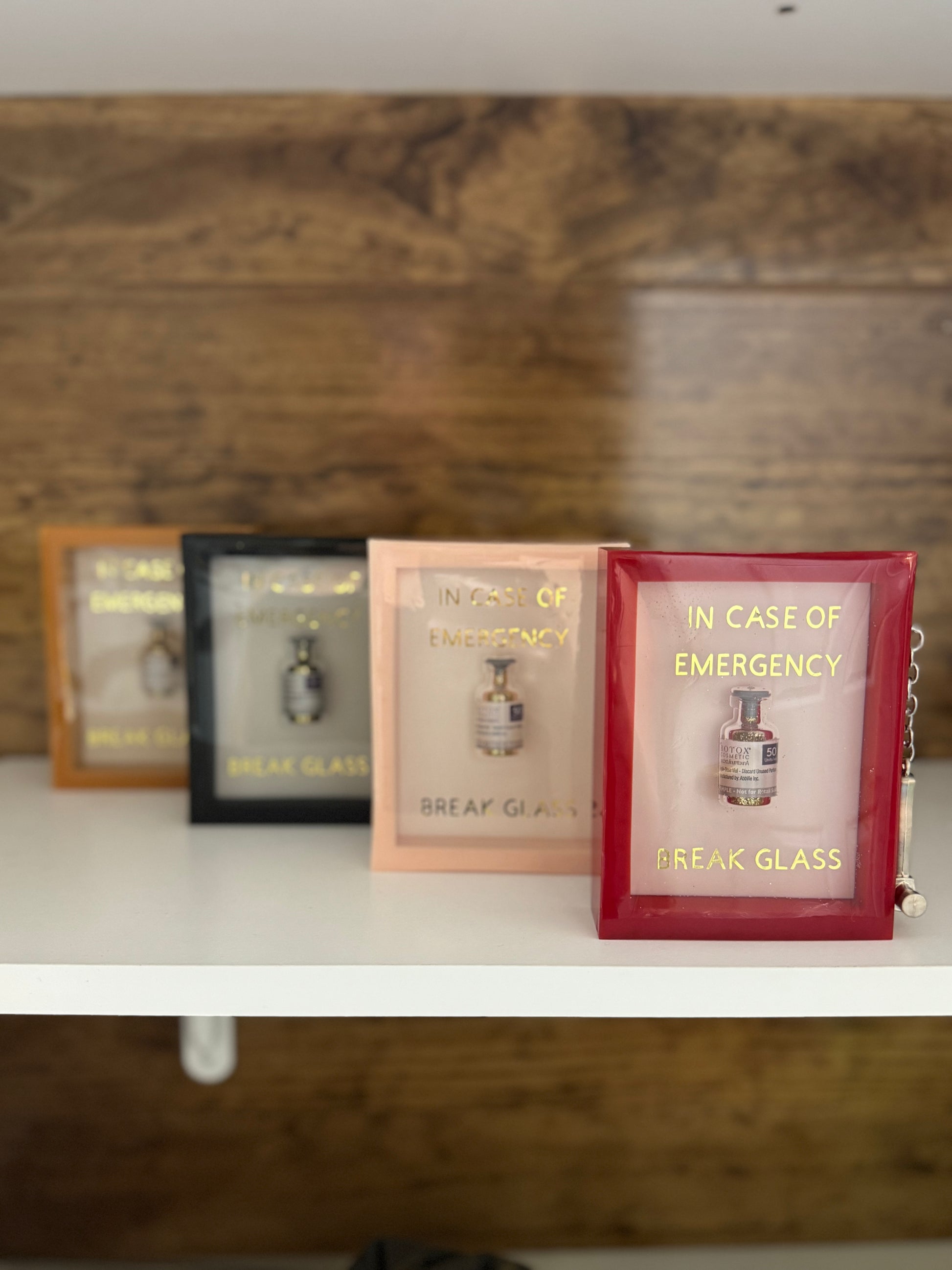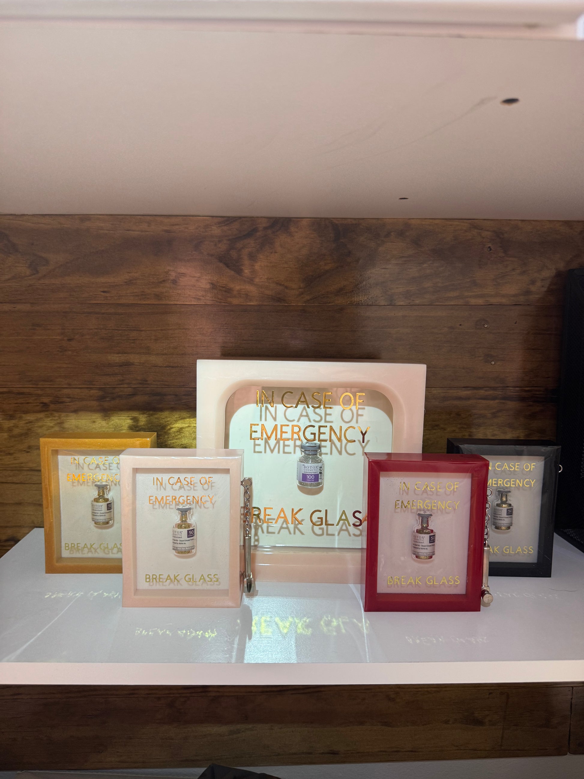 This emergency box is the miniature version of one of our best sellers. The four boxes listed are ready to ship In time for Christmas. However, you may customize an emergency box that will arrive after Christmas if you’d like specific colors! This piece measures approximately 3 1/2 inches across by 5 inches high, by 1.25 inches deep.